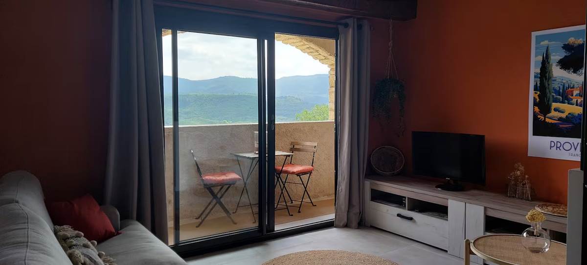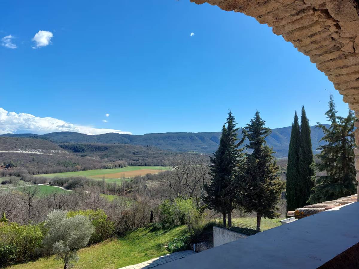 Depuis l'alcôve, vous profiterez d'une vue panoramique exceptionnelle sur le Luberon et la nature environnante. Un lieu idéal pour contempler les couchers de soleil ou simplement savourer un moment de calme.